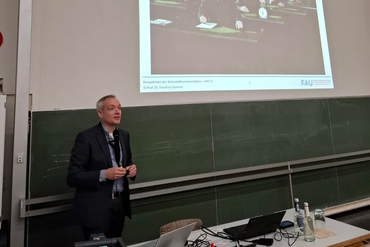 Prof. Dr. Friedrich Sommer eröffnete zunächst die Veranstaltung mit einer Übersicht der zentralen Aufgaben und der strategischen Bedeutung des Controllings für eine wirkungsvolle Unternehmenssteuerung und legte damit die Basis für ein vertieftes Verständnis darüber, wie Controlling sowohl Entscheidungsprozesse beeinflusst als auch die langfristige Unternehmensperformance unterstützt. Ein besonderes Highlight war der Gastvortrag von Frau Dr. Kim Baumgartner (FAU WiSo-Alumna und Teamlead Reporting & Analysis | Central Western Europe bei Siemens Healthineers). Auf Grundlage ihrer umfangreichen Erfahrung im Performance Controlling eines global agierenden Unternehmens zeigte sie eindrucksvoll auf, wie Controlling operative Steuerung unterstützt, Transparenz schafft und zu einer qualitativ hochwertigen externen Berichterstattung beiträgt.